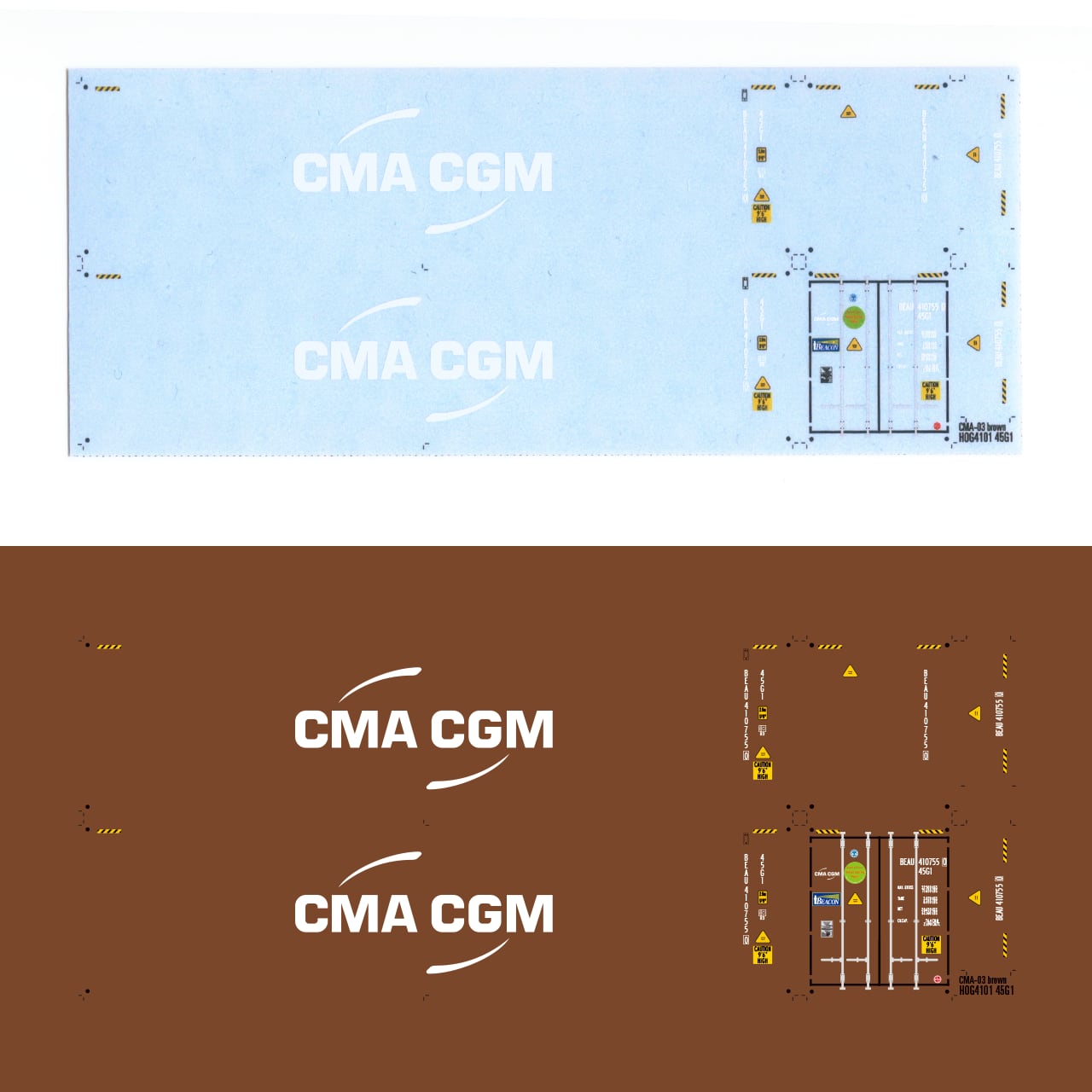 朗堂 MC-4101用 CMA CGM / BEACONの45G1 を作るためのデカールです。