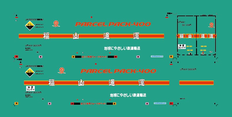 KATO 23-585-A(23-585-B) U54A(UV54A)コンテナ用 U54A福山通運 タイプコンテナ を作るためのデカールです。