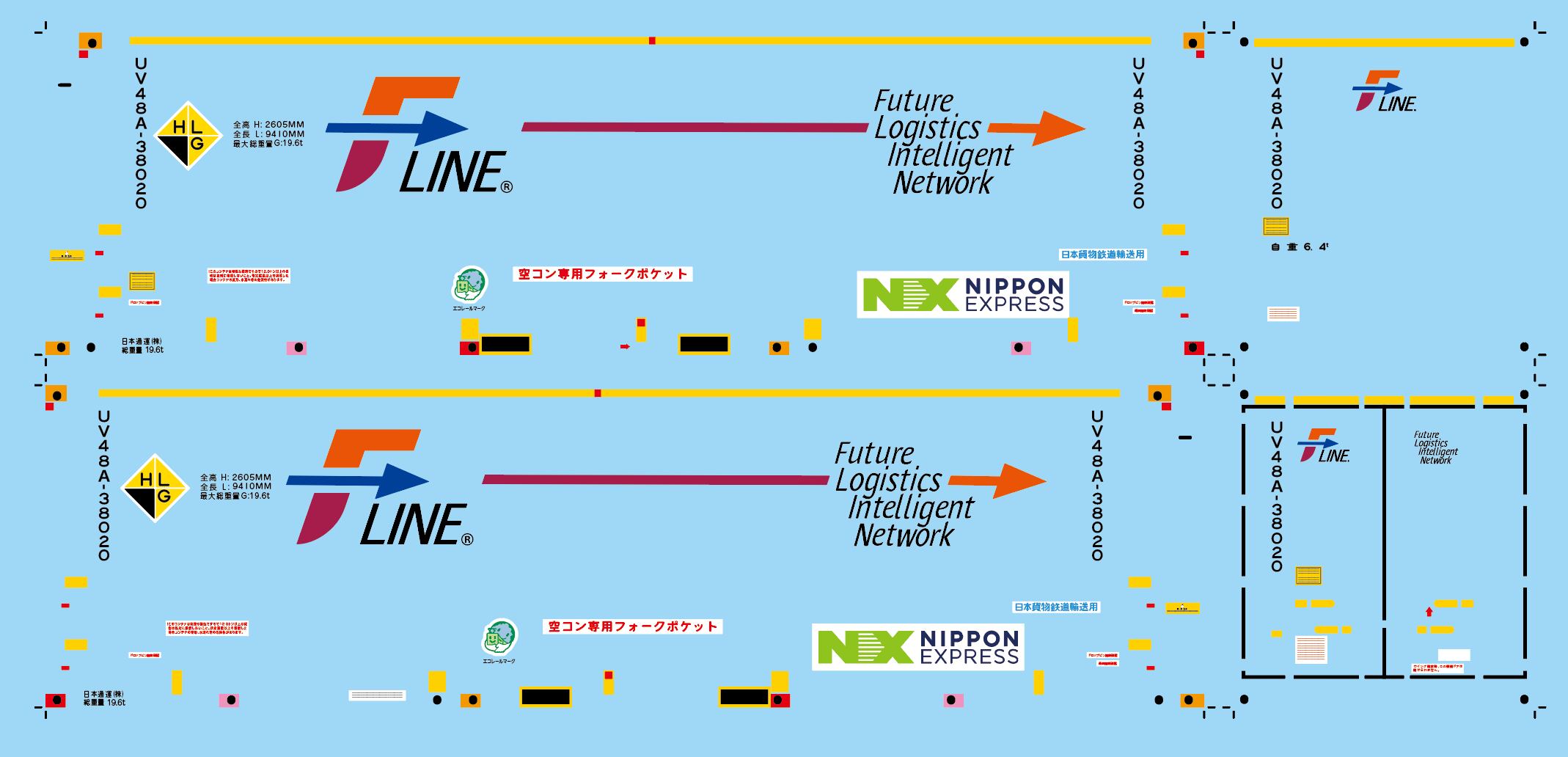 【Nスケール コンテナデカール】UV48A F-LINE TOMIX3165 同等品 コンテナベース