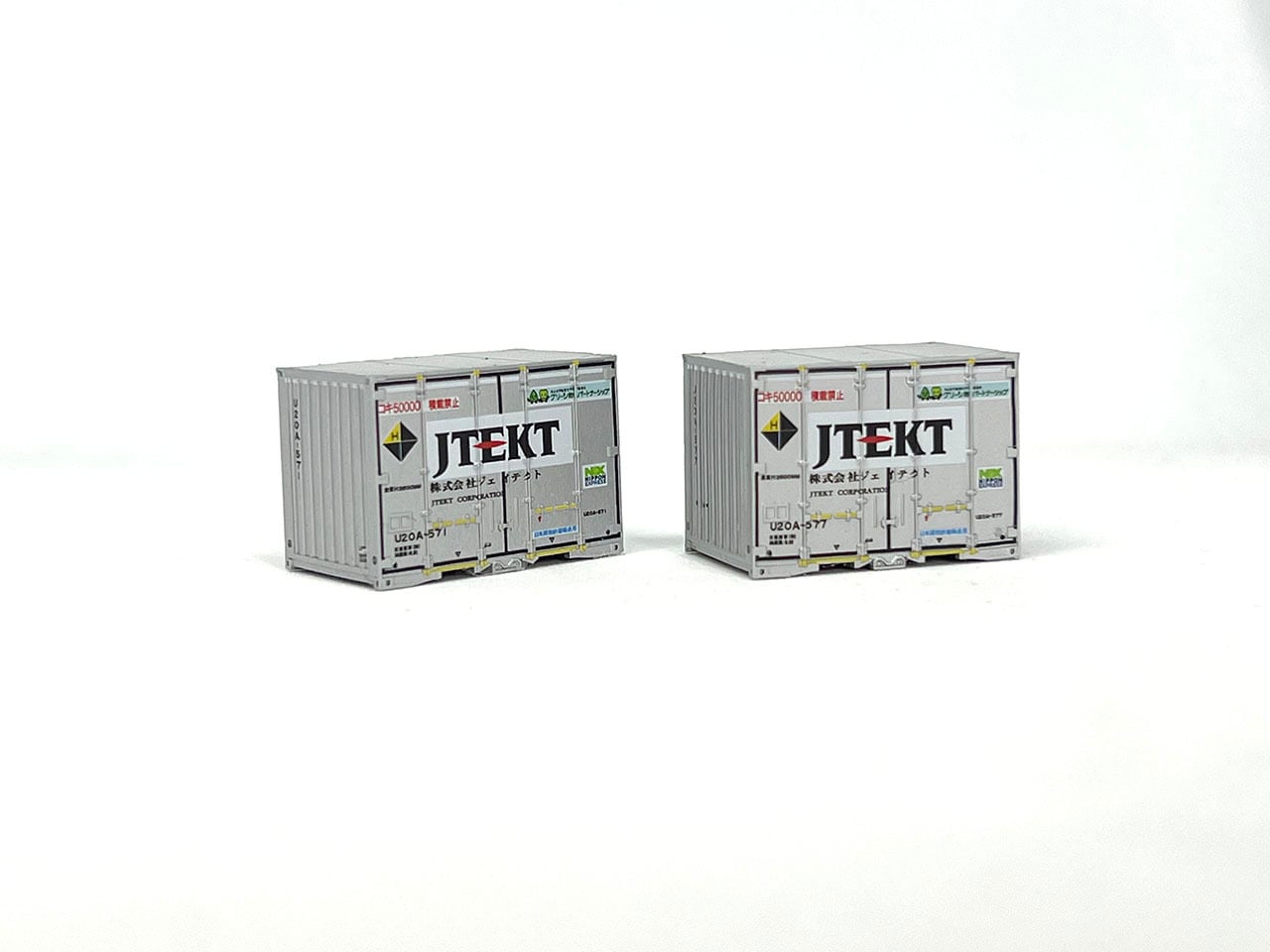 塗装は日立建機はオレンジ、鉄道貨物協会はペパーミントグリーン、JTEKT はシルバーです。