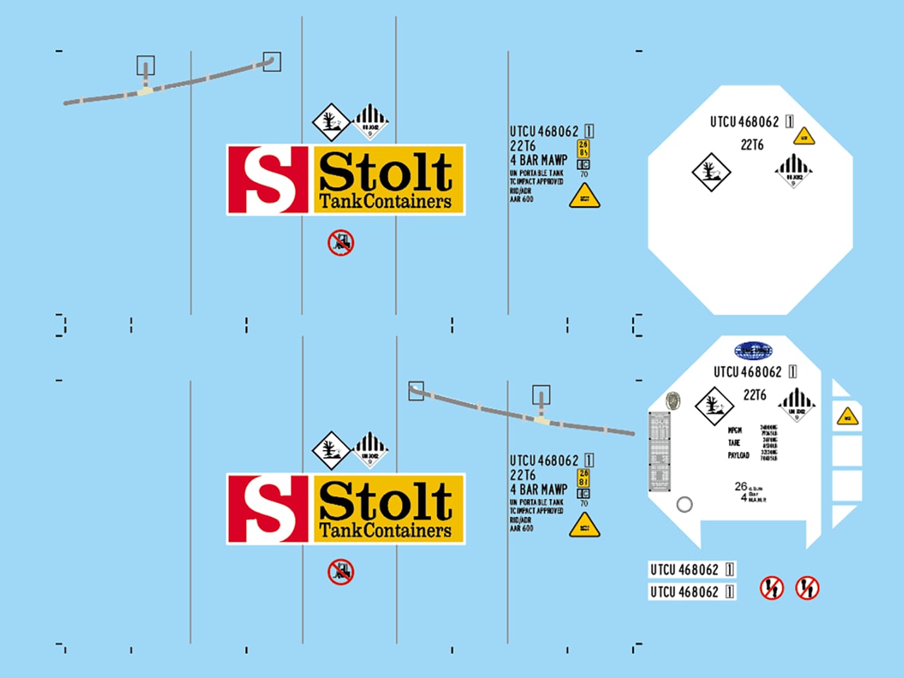 TOMIXの3175 ISOタンクコンテナ用 Stolt 22T6タイプ 作成用デカールです。