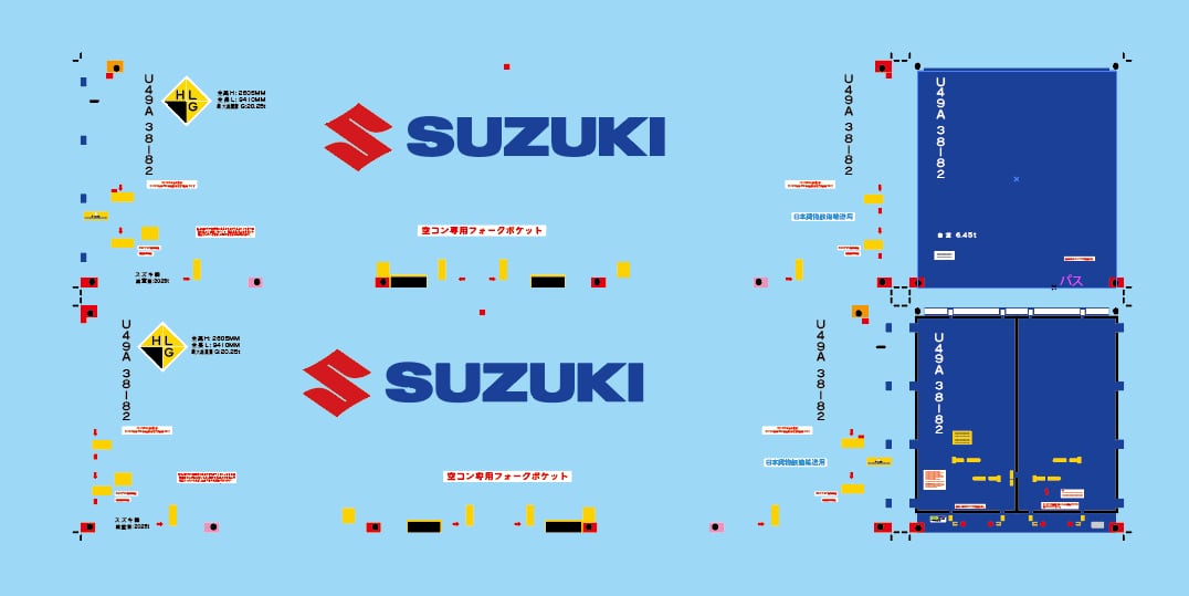 TOMIX 3165同等品用 U49A形 SUZUKIコンテナ を作るためのデカールです。